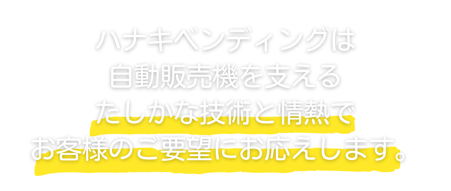 当社は1984年の設立以来、自動販売機の整備、塗装、修理、設置を通じて、自動販売機の進化とともに成長してまいりました。