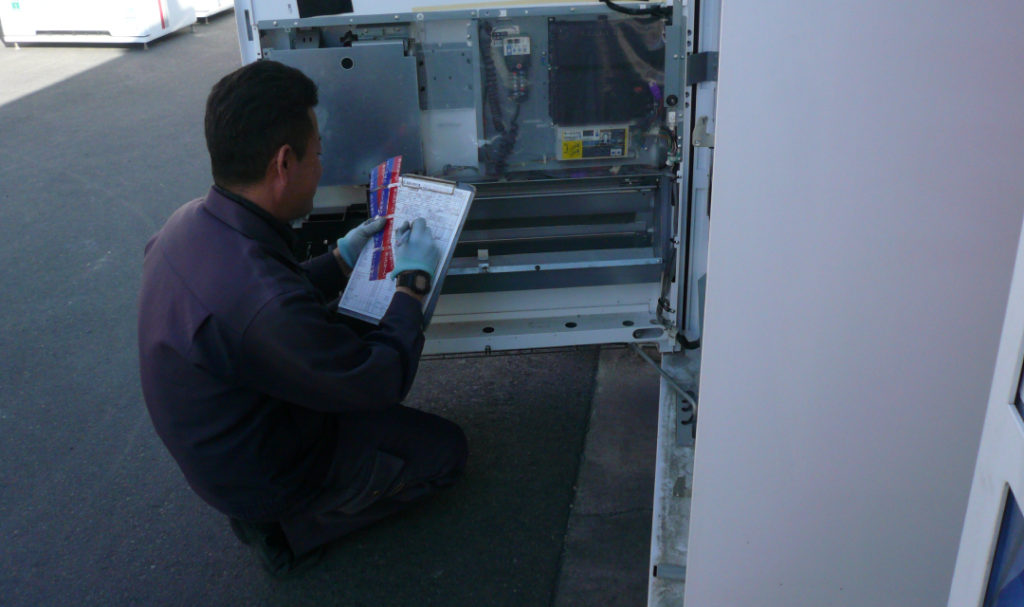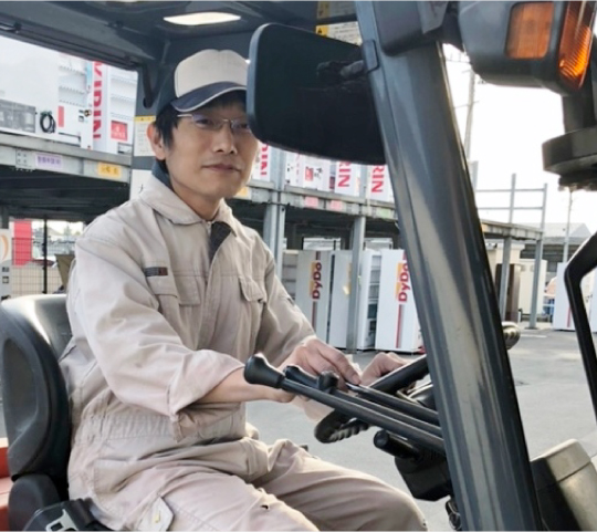 自動販売機の設置業務を担当しています。トラックで設置先に向かい、自動販売機の設置や交換、撤去作業をします。1日に4~5件の作業があります。会社に戻ってからは、自動販売機の積込など明日の準備をします。