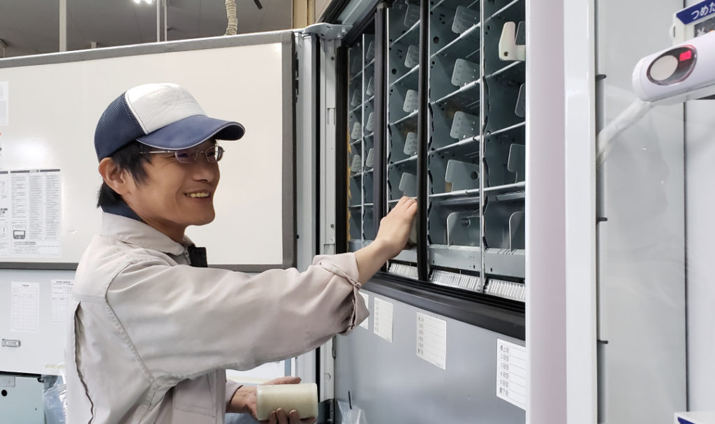 自動販売機の分解作業と塗装前の下地工程を担当しています。色々な工程を経験しているので、スタッフがお休みの時はピンチヒッターで他の工程に入る事もあります。